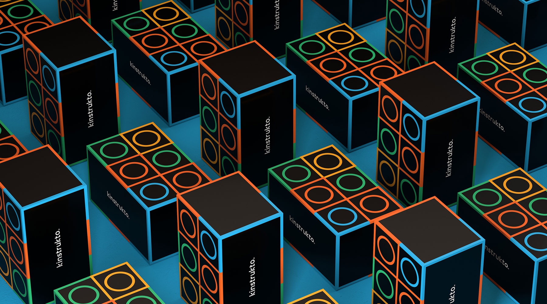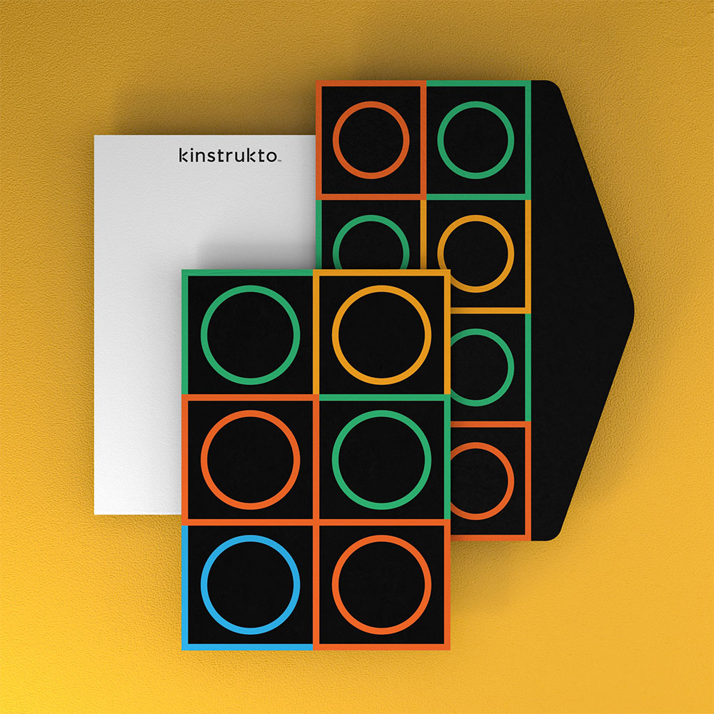 The product already came with its own visual elements, and so, the challenge was to create a bold brand language representing the product without overpowering it. We achieved that with a visual language designed from the blocks, by throwing the spotlight on them. The forms and the colours are all derived from the product. The logotype is set in a modern sans serif with a subtle nod to the blocks in the ‘k’ which also acts as the brand mark. The resulting geometry in the visuals creates a playful yet sophisticated vibe.